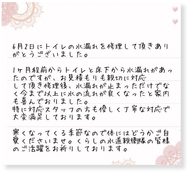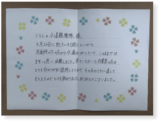 お電話やメールだけですとお客様のトラブルの状況を正確に把握できないため、スタッフが現場にて点検のうえ、適切なお見積りをご確認いただいています。